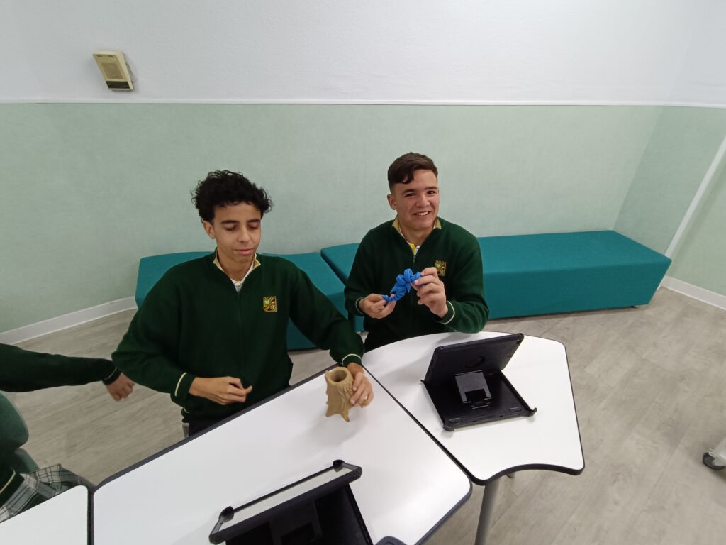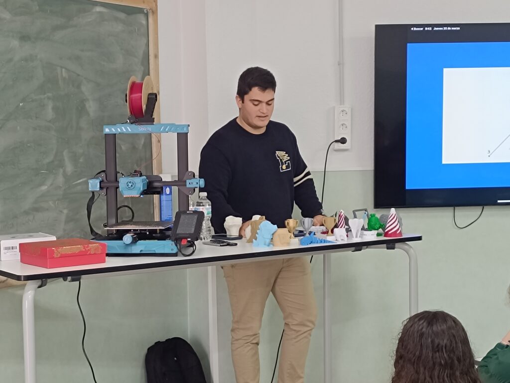 Uno de los momentos más emocionantes de la jornada fue la demostración en vivo de una impresora 3D en funcionamiento, permitiendo a los alumnos ver cómo se crean objetos capa por capa. Además, pudieron observar de cerca diversas figuras previamente impresas, explorando los detalles y la precisión de esta tecnología.