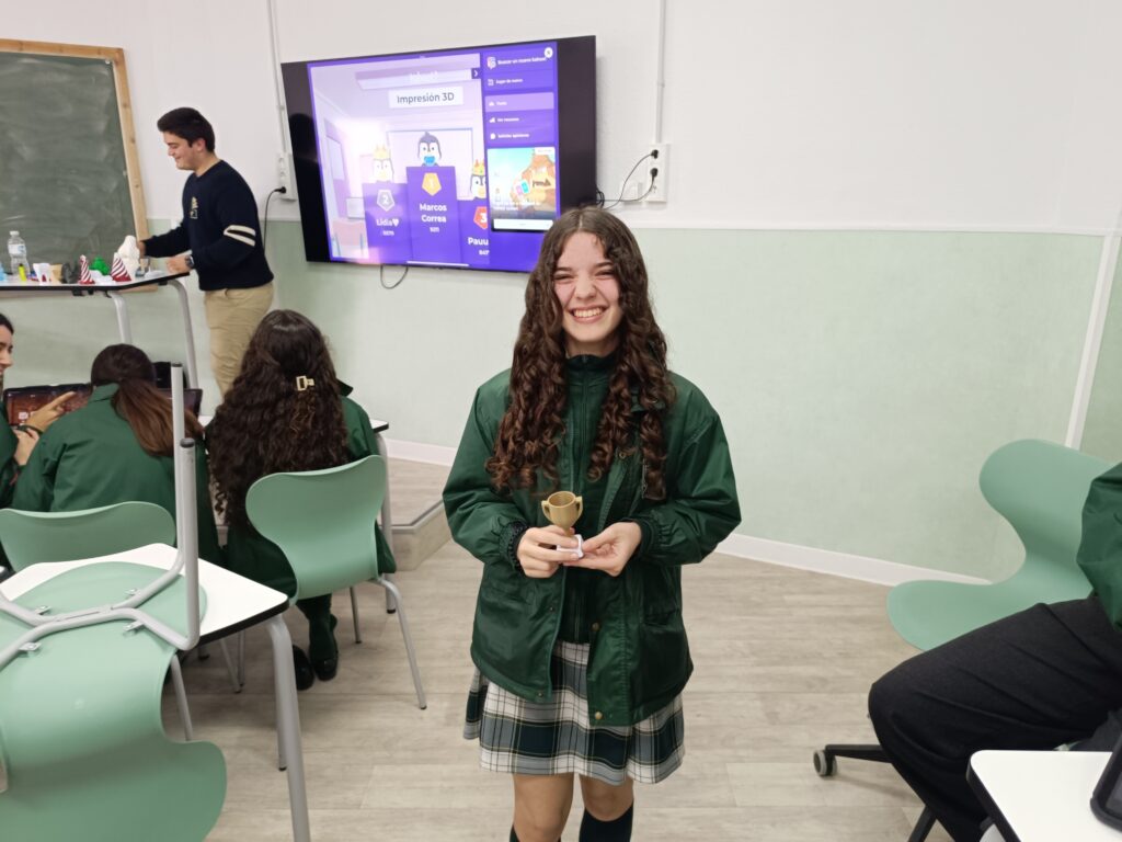 Para cerrar la charla, se organizó un concurso de preguntas sobre impresión 3D, donde los ganadores recibieron como premio un trofeo impreso en 3D, una experiencia que reforzó de forma dinámica y divertida los conocimientos adquiridos.