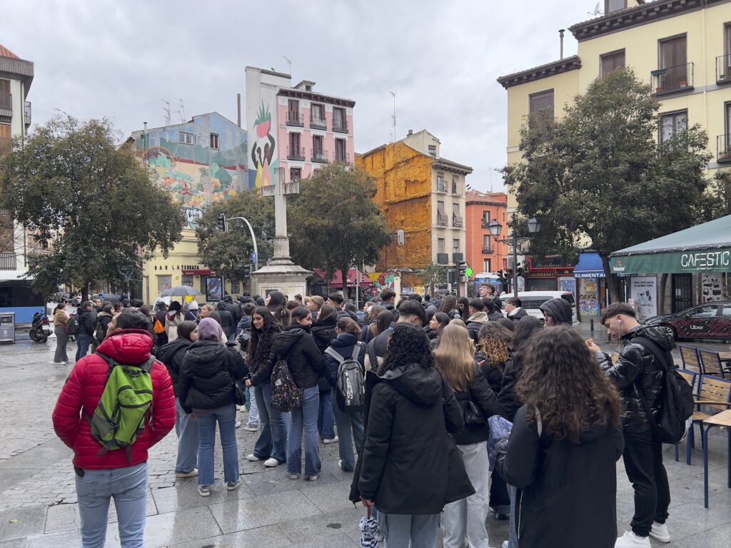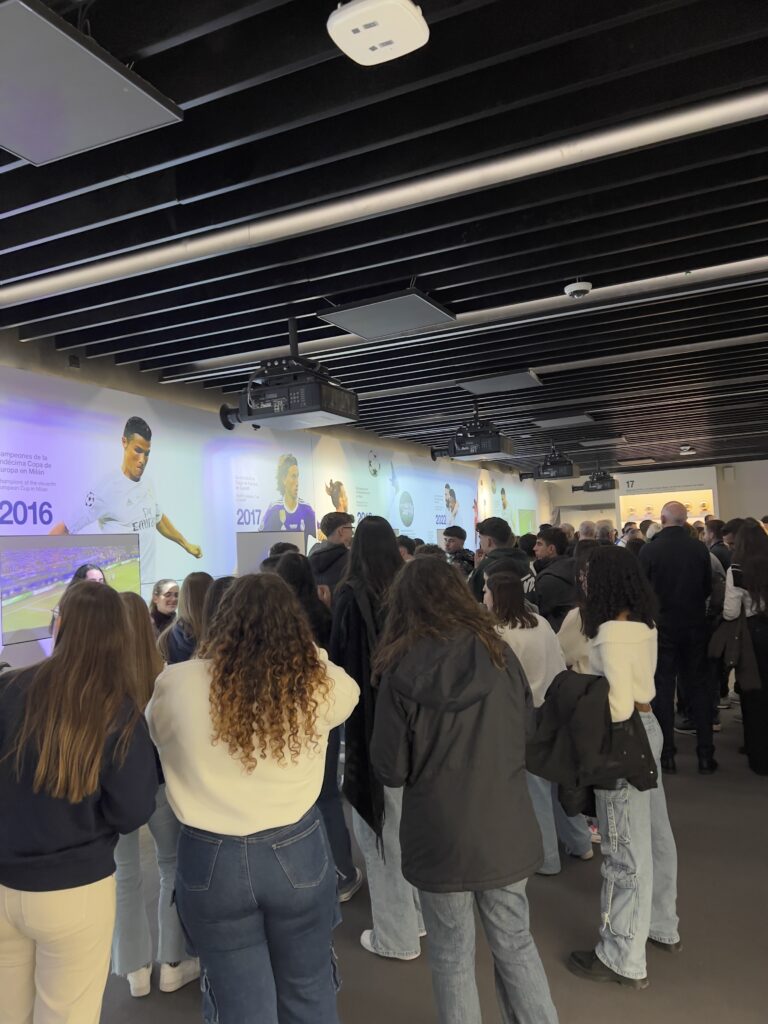 El primer día comenzó con una visita guiada por Madrid, durante la cual los estudiantes recorrieron algunos de los monumentos más representativos de la ciudad. Pasearon por la Puerta del Sol, la Plaza Mayor y el Palacio Real, aprendiendo sobre la historia y el patrimonio cultural de Madrid de la mano de una guía experta. Por la tarde, nuestro alumnado visitó el Estadio Santiago Bernabéu, donde exploró las impresionantes instalaciones del Real Madrid, incluyendo el museo y el campo, y viviendo la emoción de uno de los clubes más grandes del fútbol mundial.