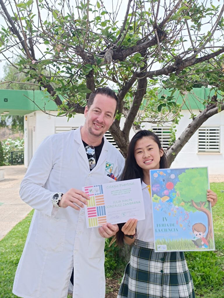 es un orgullo para nosotros anunciar que Julia Xialin González Zambrana ha sido galardonada con el Primer Premio al Mejor Cartel de la IV Feria de la Ciencia de nuestro colegio Puertosol.