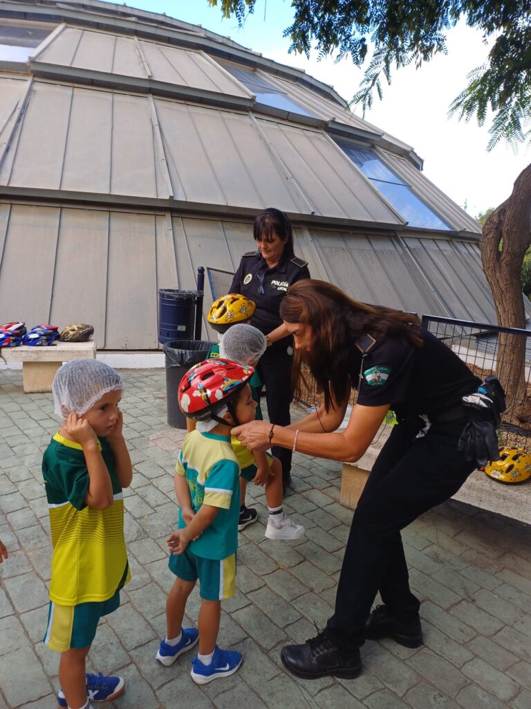 Durante la primera parte teórica, los agentes explicaron a los estudiantes las normas básicas de circulación, la importancia del uso del casco y otros elementos de seguridad, así como cómo comportarse de forma responsable tanto como peatones como ciclistas. A través de ejemplos y materiales visuales, los alumnos pudieron comprender de manera práctica cómo prevenir accidentes y respetar las señales de tráfico.