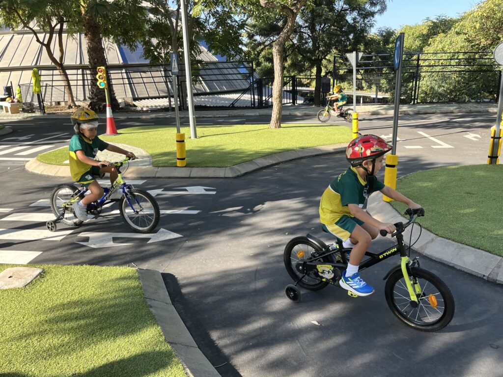 Posteriormente, en la parte práctica, los estudiantes participaron en un circuito con bicicletas preparado por los agentes en el patio o zona habilitada. Allí pusieron en práctica lo aprendido, demostrando sus habilidades de conducción y aplicando las normas de circulación de forma divertida y segura.