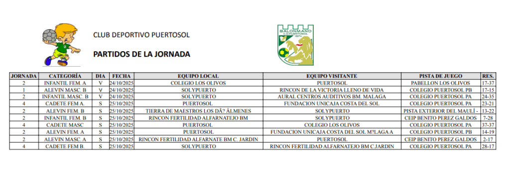 Adjuntamos todos los resultados de la jornada.