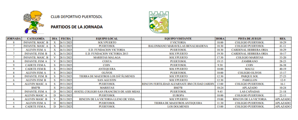 En cambio, el mal tiempo impidió que se completara la jornada prevista para el domingo. Tanto el Cadete Femenino como el Alevín Femenino, que tenían programados sus partidos aplazados frente a Antequera, no pudieron disputarlos debido a la previsión de lluvias.