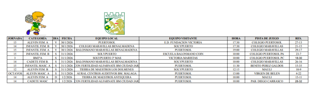 El gran titular de la jornada lo protagonizaron nuestros alevines, que fueron los primeros en inaugurar los cruces y lo hicieron de manera brillante, logrando una importante victoria frente a Balonmano Málaga. El equipo demostró carácter, intensidad y un alto nivel de juego, imponiéndose con solvencia en un encuentro muy completo. Este triunfo les permite encarar con ventaja el partido de vuelta, que se disputará en nuestro colegio, donde buscarán sellar el pase a cuartos.