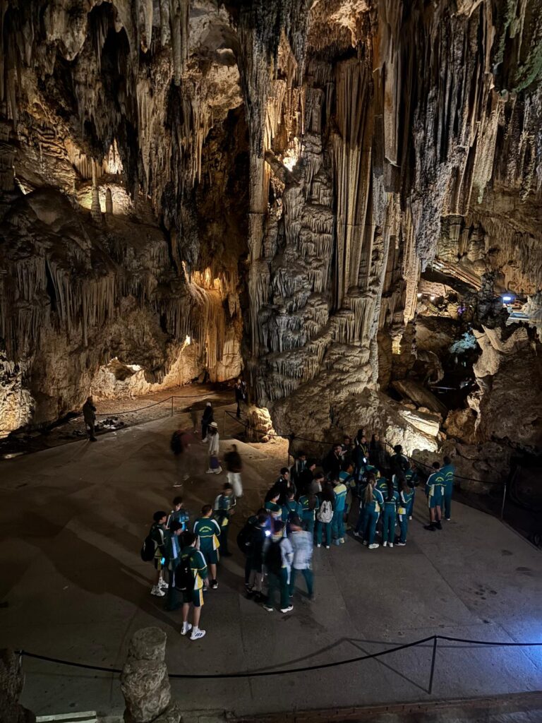 El lunes 7 de abril, los alumnos de 4º de ESO realizaron una enriquecedora excursión a las Cuevas de Nerja, donde pudieron disfrutar de una visita virtual interactiva que complementó la experiencia presencial. Durante el recorrido, el profesorado ofreció explicaciones detalladas y dinámicas que ayudaron al alumnado a comprender mejor los procesos geológicos implicados en la formación de este impresionante entorno kárstico.