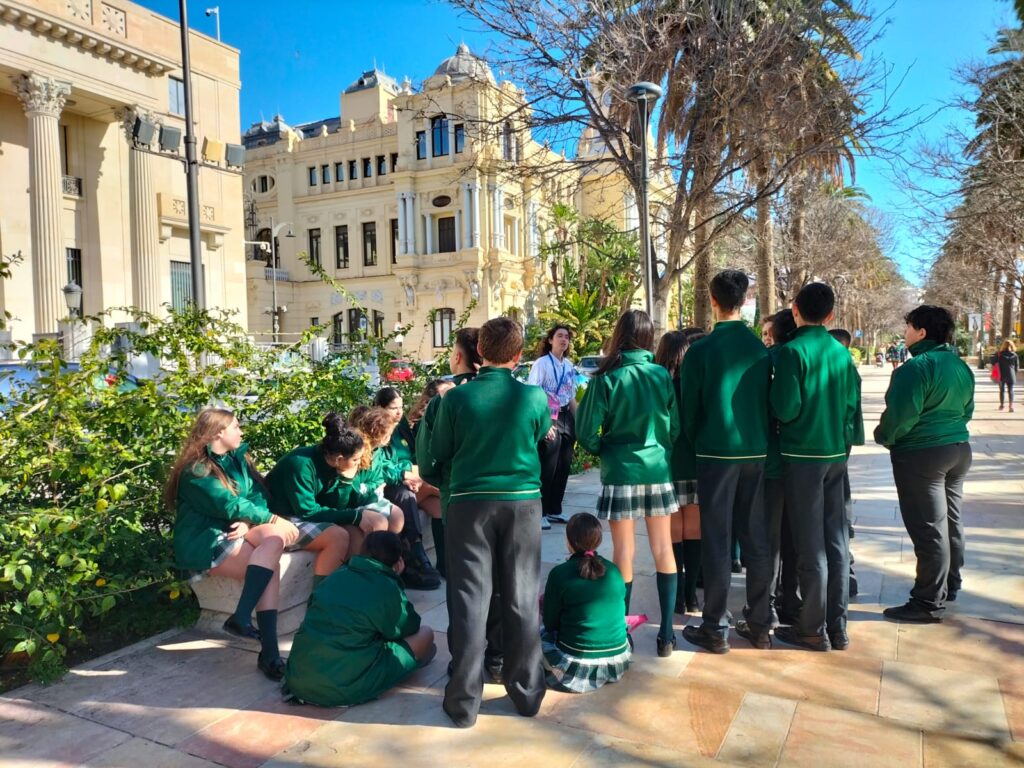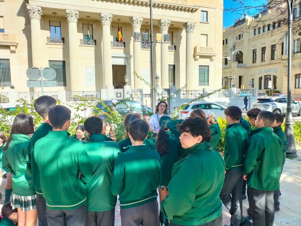 Durante la actividad, los estudiantes recorrieron este emblemático espacio de la ciudad, donde pudieron observar y analizar diferentes elementos arquitectónicos y monumentales, comprendiendo su valor histórico y cultural. A lo largo de la visita, los monitores explicaron las características más relevantes de construcciones y detalles urbanos, fomentando la participación del alumnado mediante preguntas y comentarios.