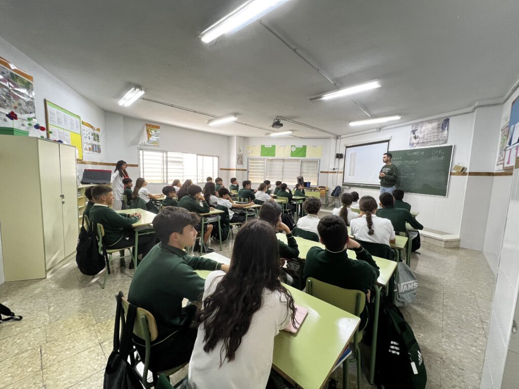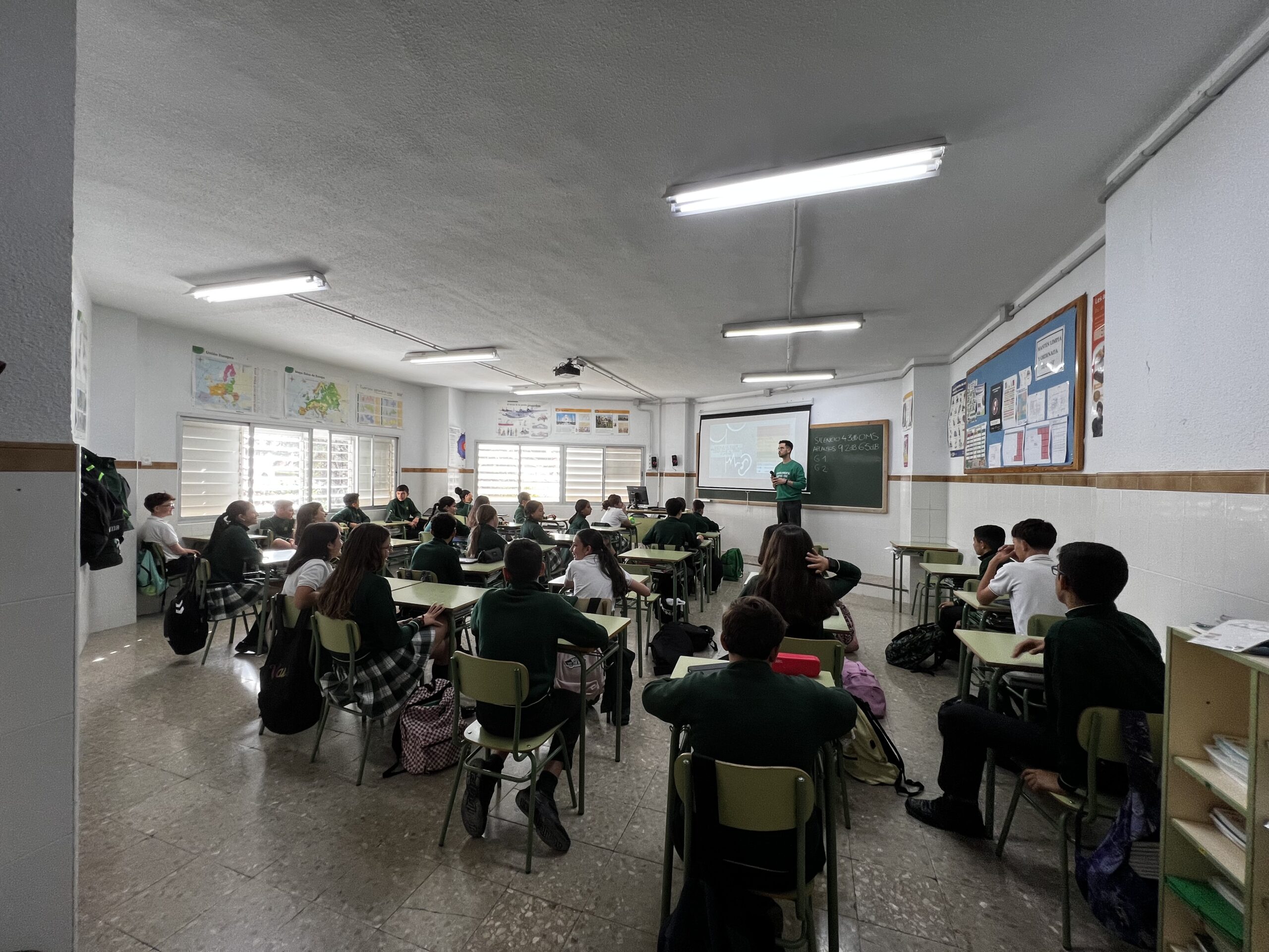 A lo largo de la sesión, los estudiantes reflexionaron sobre el impacto del ruido en la vida cotidiana, abordando aspectos como la exposición prolongada a altos niveles sonoros, sus consecuencias en el bienestar físico y emocional, y la importancia de adoptar hábitos responsables. Mediante dinámicas participativas y ejemplos cercanos, el alumnado pudo identificar situaciones de su entorno en las que se produce contaminación acústica.